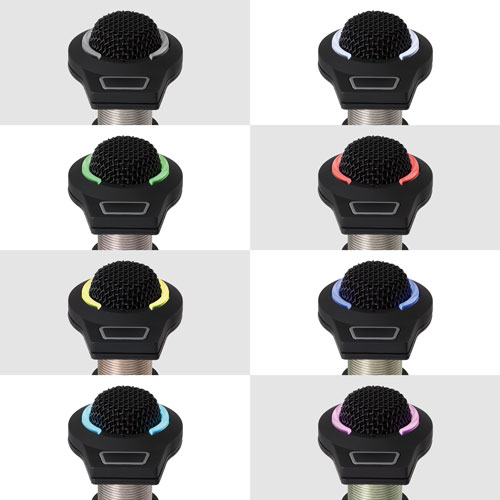 ES945O/FM3 全指向性電容式界面話筒配備了3針 XLRM 型輸出連接器和一個電容感應式輕觸開關,可就地將話筒設為靜音。采用不顯眼設計,可以安裝在桌面或控制面板上,以提供最佳的隱藏性,提供清晰而通透的收音,非常適合會議、錄音、監聽和其他要求苛刻的收音應用,而話筒頂部設有可見度高的雙態式 RGB LED 燈環(7種可選顏色 + 關燈),能顯示開啟/靜音狀態。話筒采用堅固的全金屬外殼和兩層穿孔保護網格,其全指向性模式提供了360°的收音角度,而話筒配有 UniGuard? RFI 屏蔽技術可以有效地抑制射頻干擾。