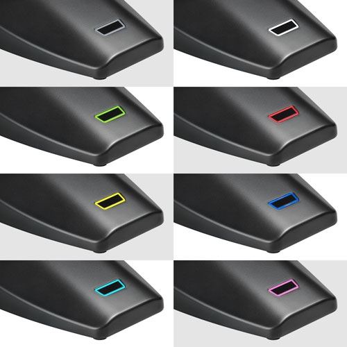 ② 臺架供電模組和鵝頸管組件均內置RGB LED燈,可指示話筒的開/關狀態。